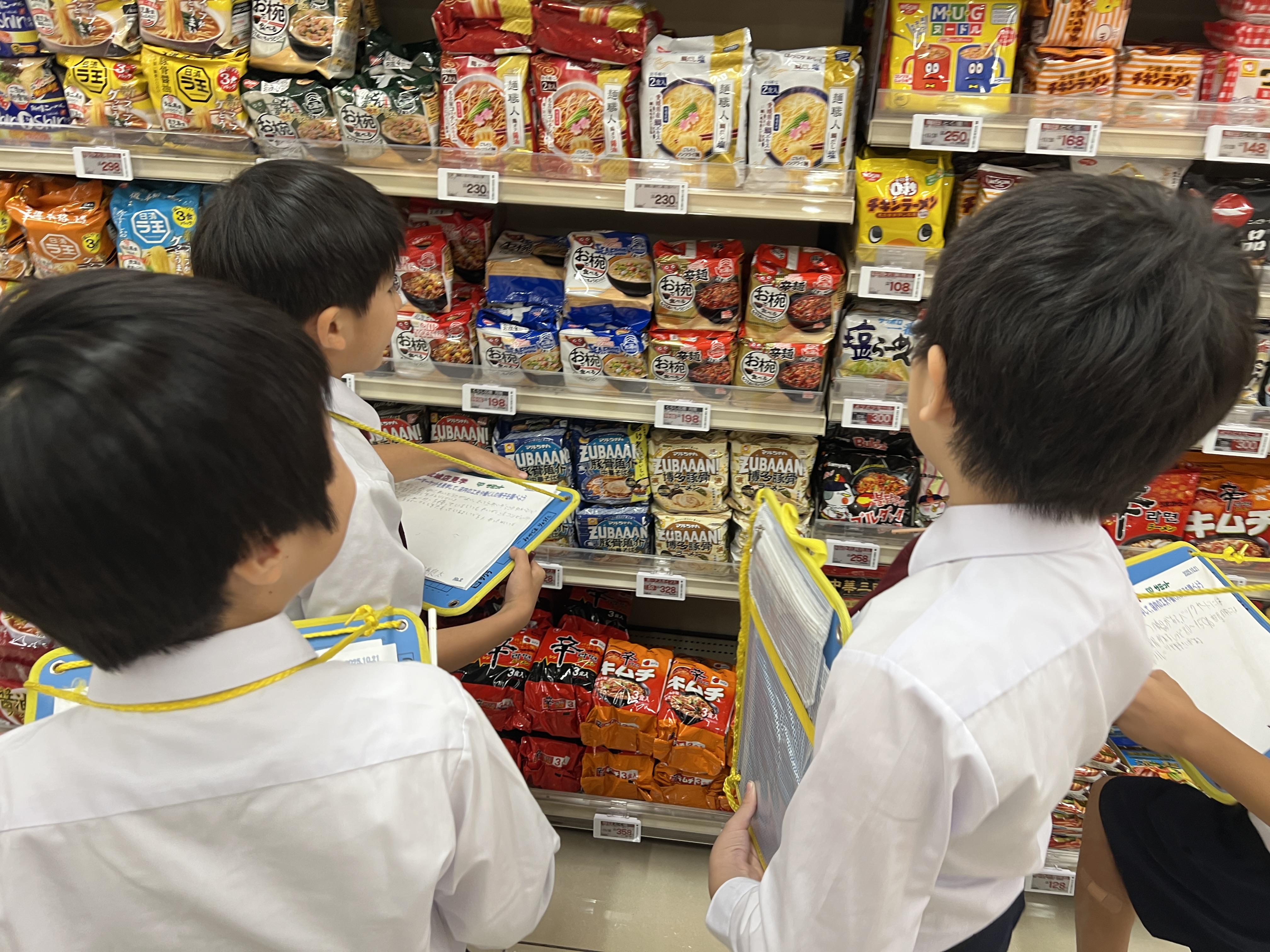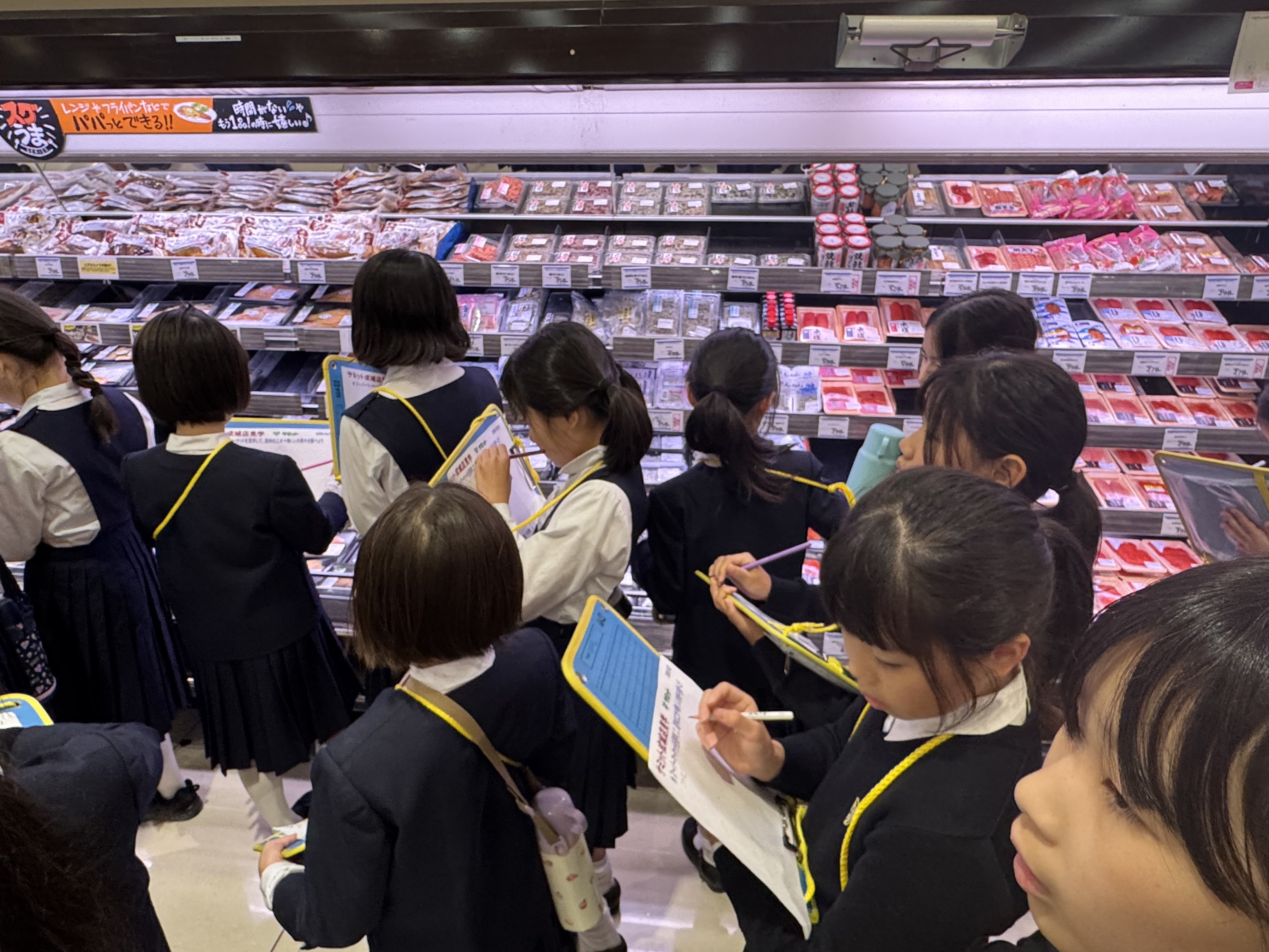 社会の授業で学んだ「お店ではたらく人の仕事」からスーパーマーケットにしぼり、お店全体の様子や品物を置いている場所など、お店の仕組みを調べに行きました!