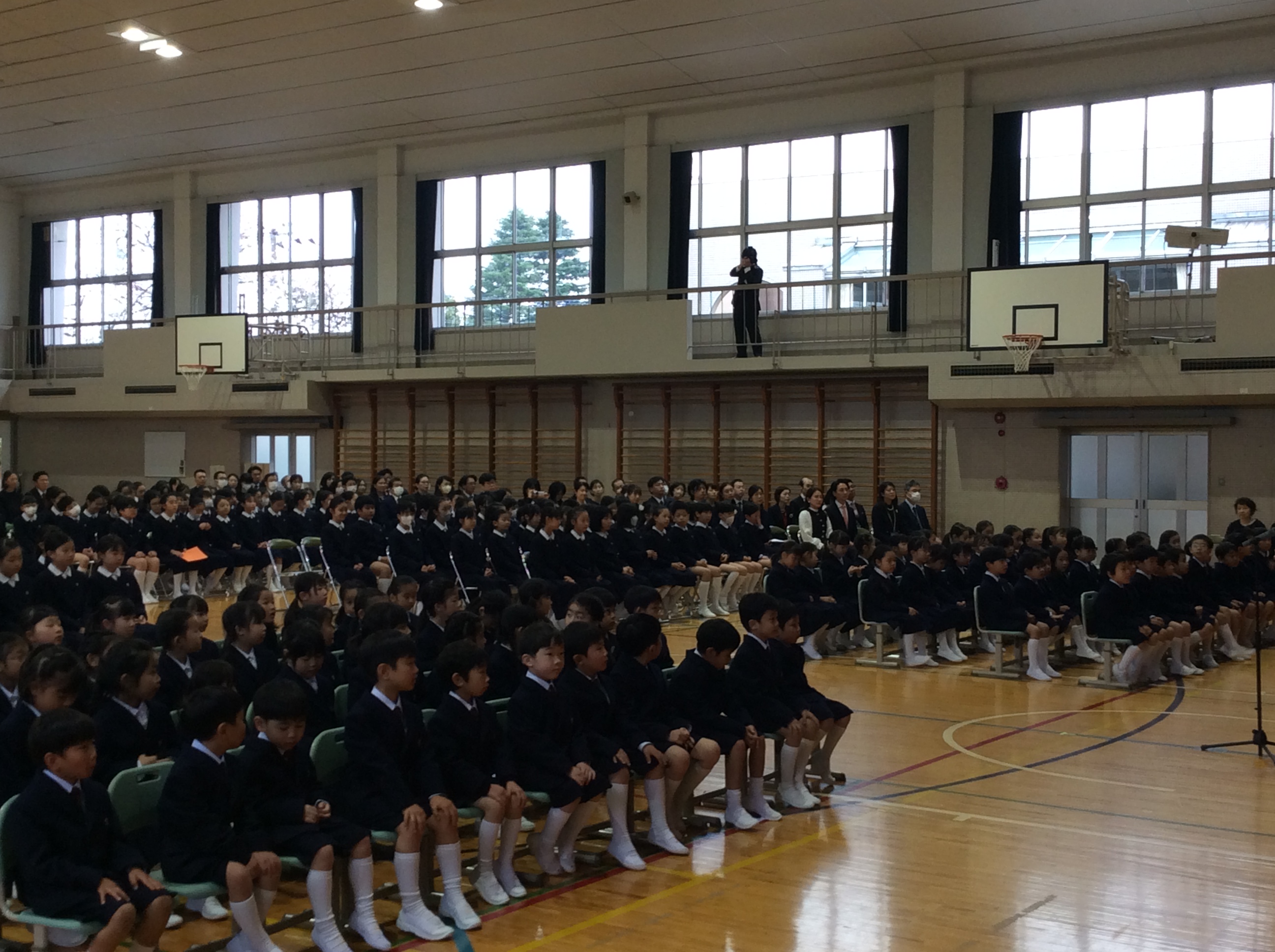 教室に入ると担任の先生が笑顔で迎えてくれました。「1年間どうかよろしくね!」なんだかフッと緊張がほぐれた瞬間でした。そして見渡すと大勢の新しいお友達。「みんなやさしそうだな・・・。だれとともだちになろうかな・・・。となりのせきのひとは・・・。」そんなことを考えているうちに体育館で入学式が始まりました。