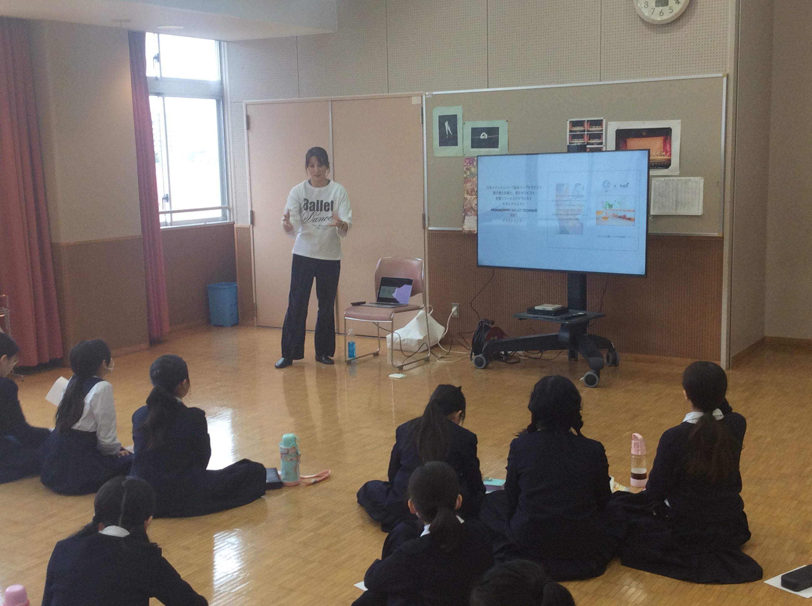 来校されたその道のプロフェッショナルは、客室乗務員(CA)、モデル、ダンサー・演出家、オペラ歌手・ディズニーキャスト、税理士、バレエ教師、幼稚園教諭、建築士(設計士)、玩具メーカー海外事業部、弁護士、薬剤師のみなさん。なかでも卒業生は懐かしい顔ぶれでしたが本当に立派になっていてびっくりでした。