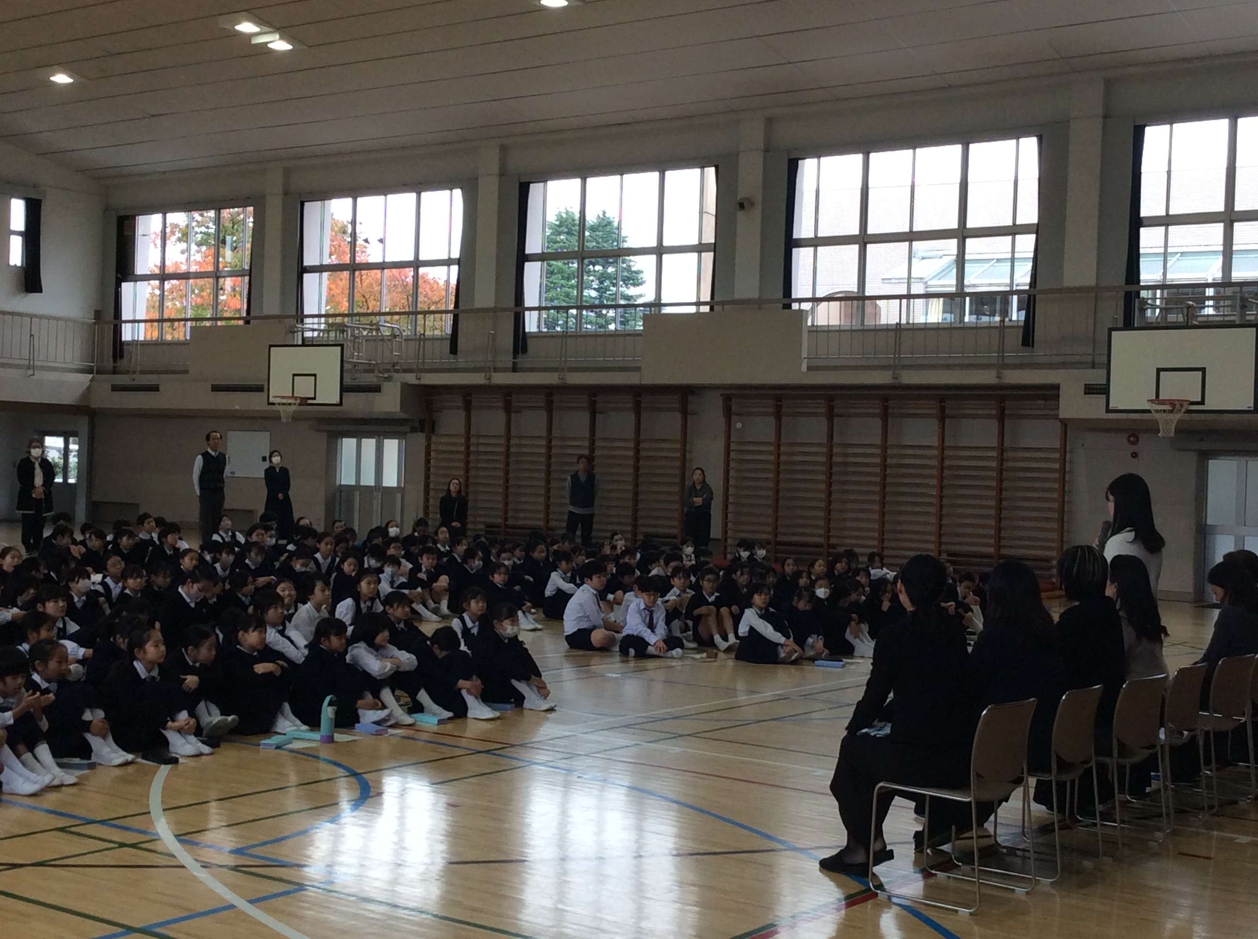 講義の最後は全ての方々に体育館に集まっていただき、講師の先生方から子どもたちに思いを語っていただきました。
