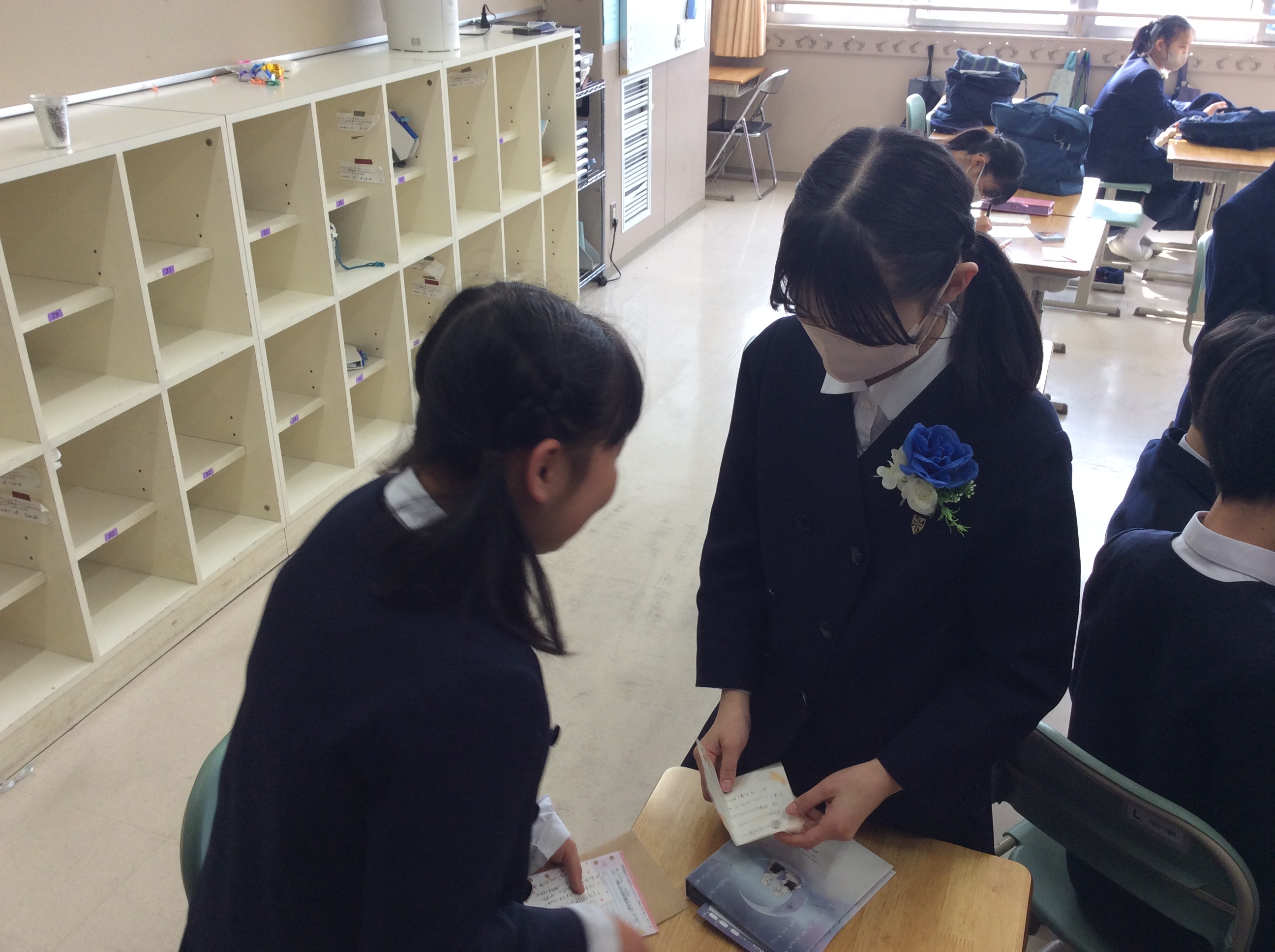 普段通りに仲の良い友達と談笑したり、下級生が最後のお別れに手紙を渡しに来ていたり、思い出話をしていたり・・・ なんだか特別な気持ちになっているようです。