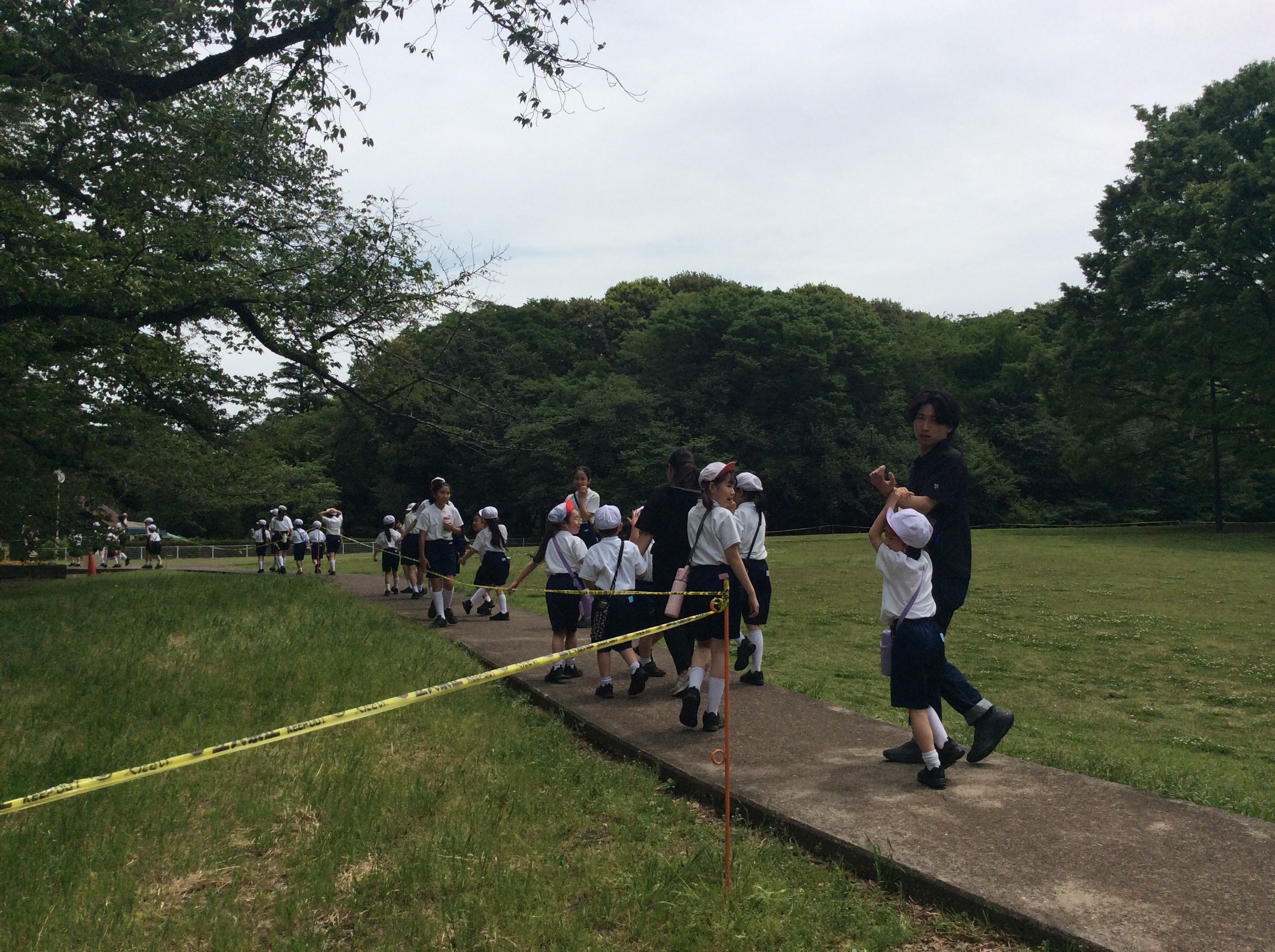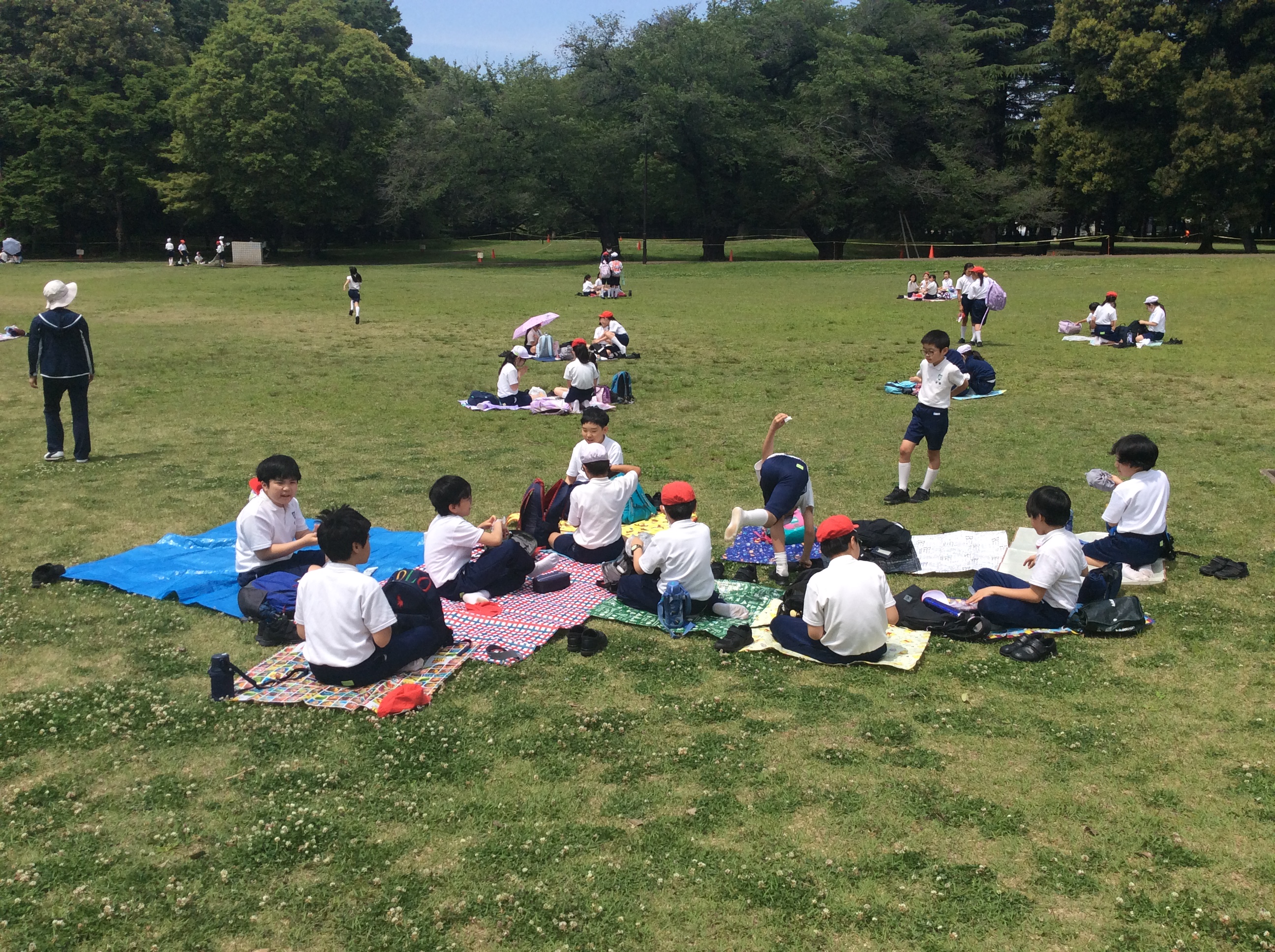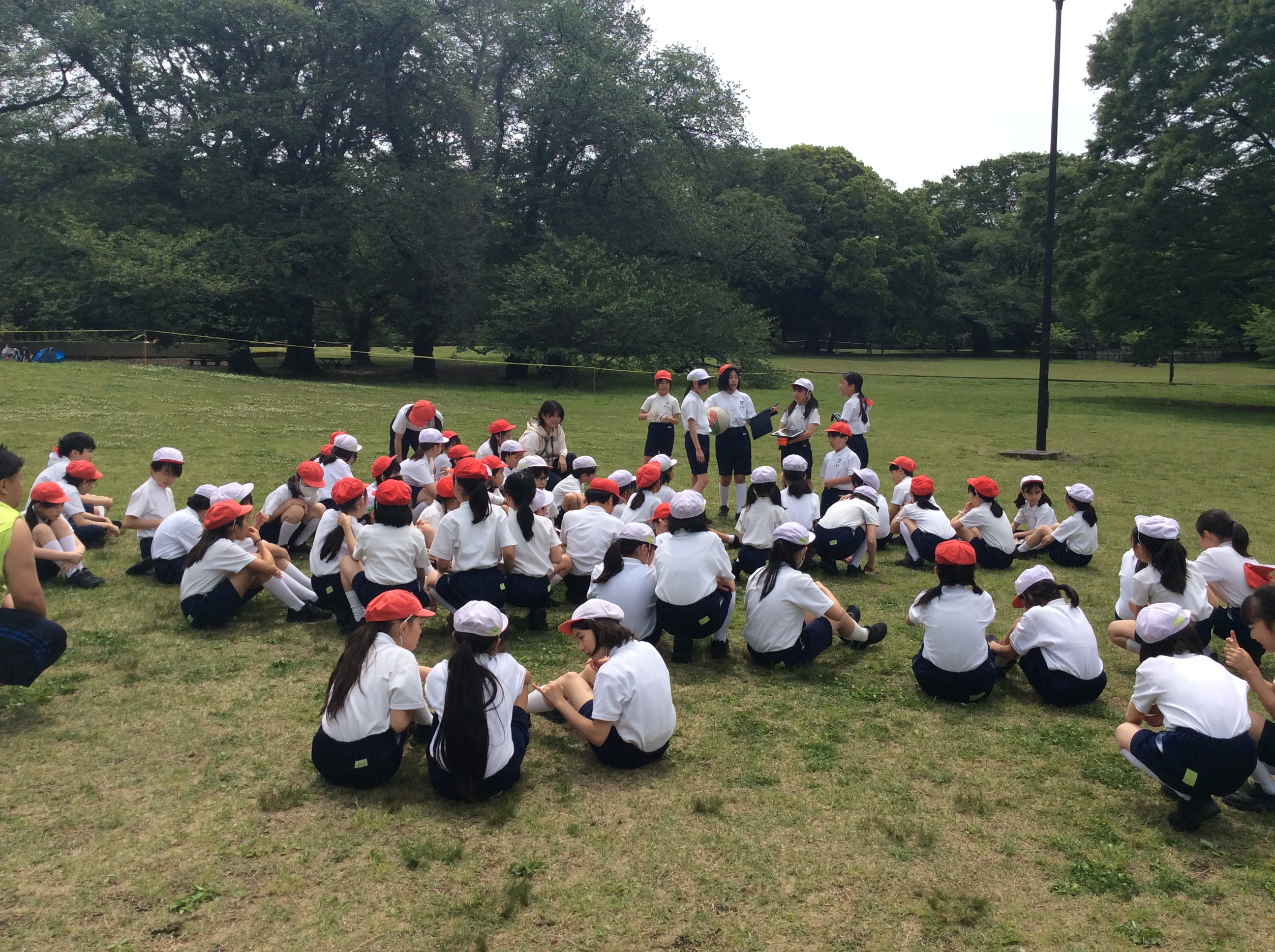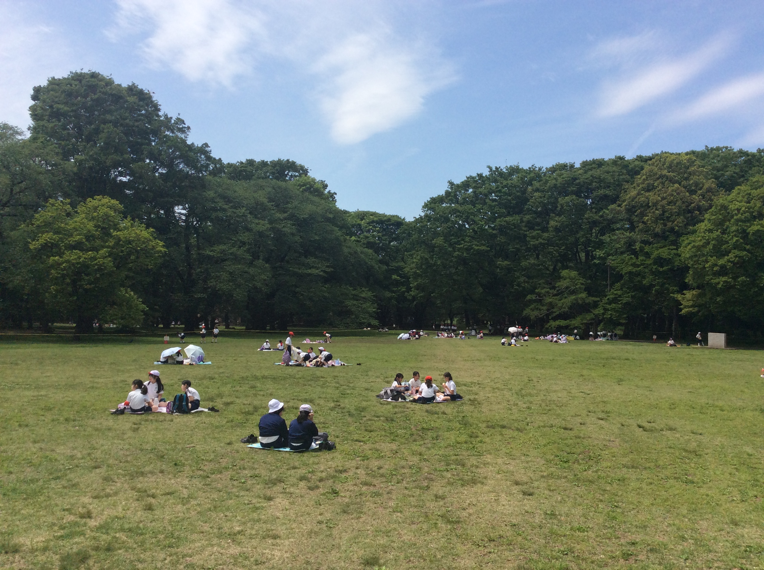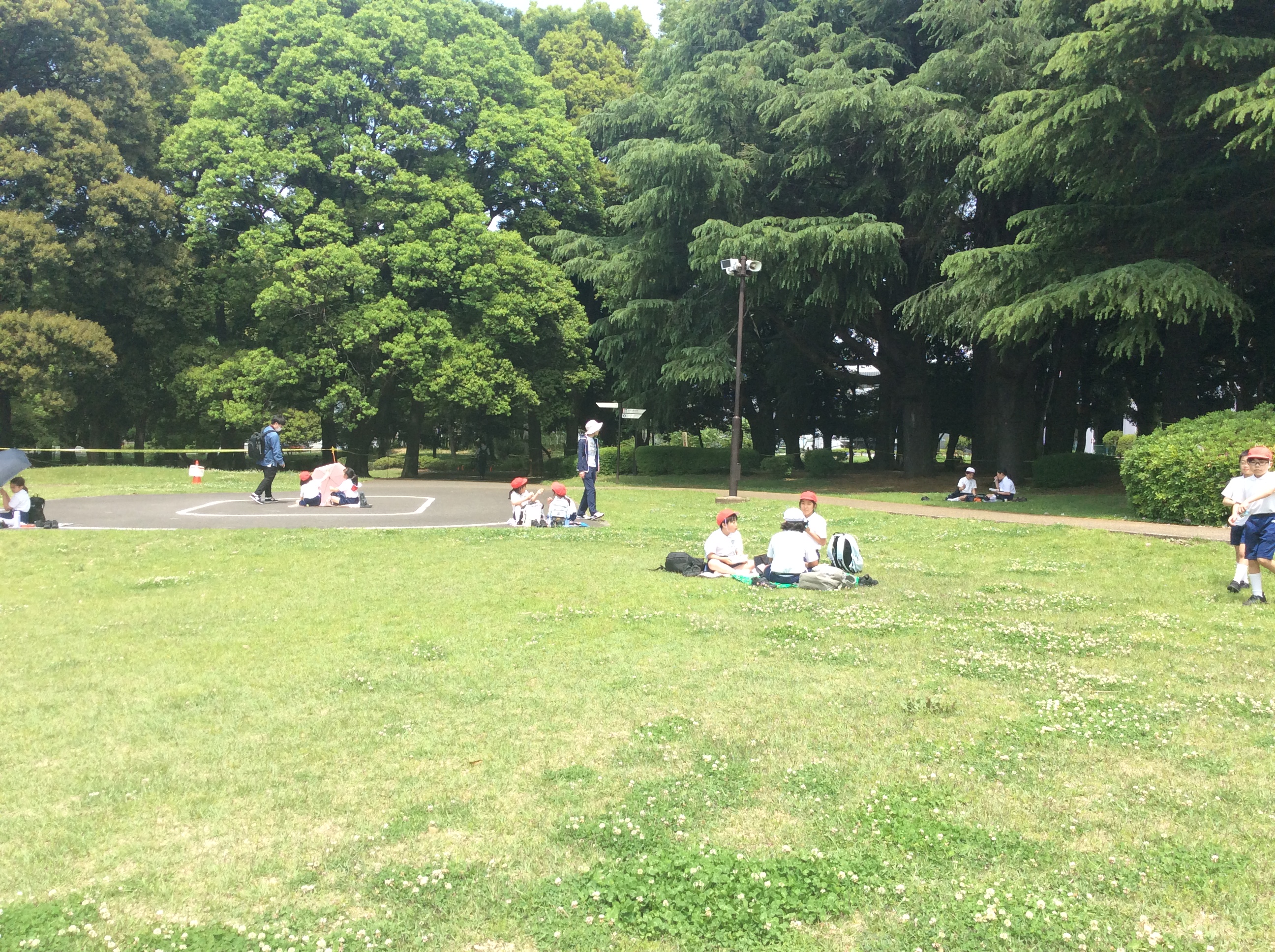きれいな青空のもと、全校児童が砧公園へ繰り出しました。広いフィールドでおもいっきり遊ぶぞ!!