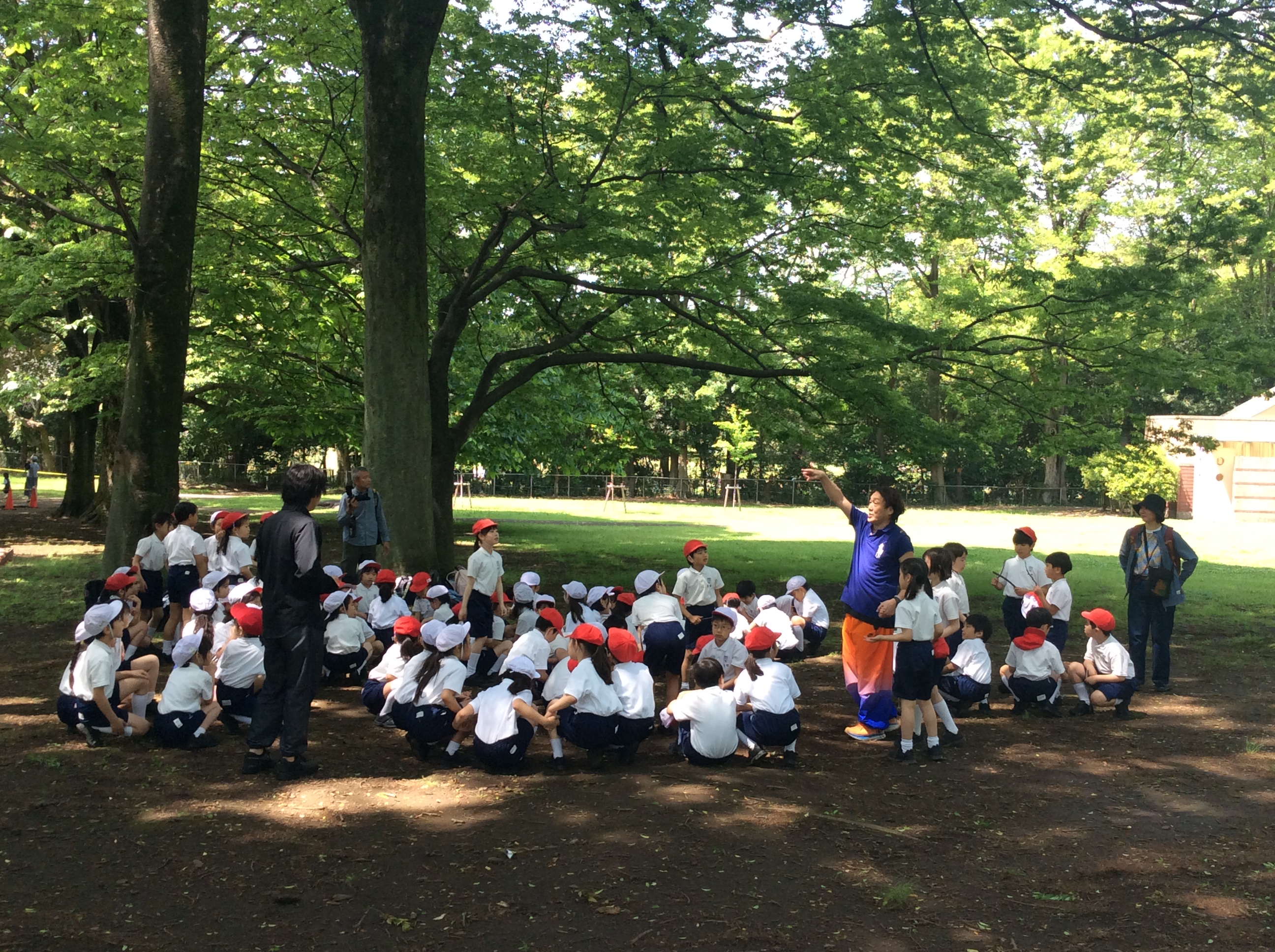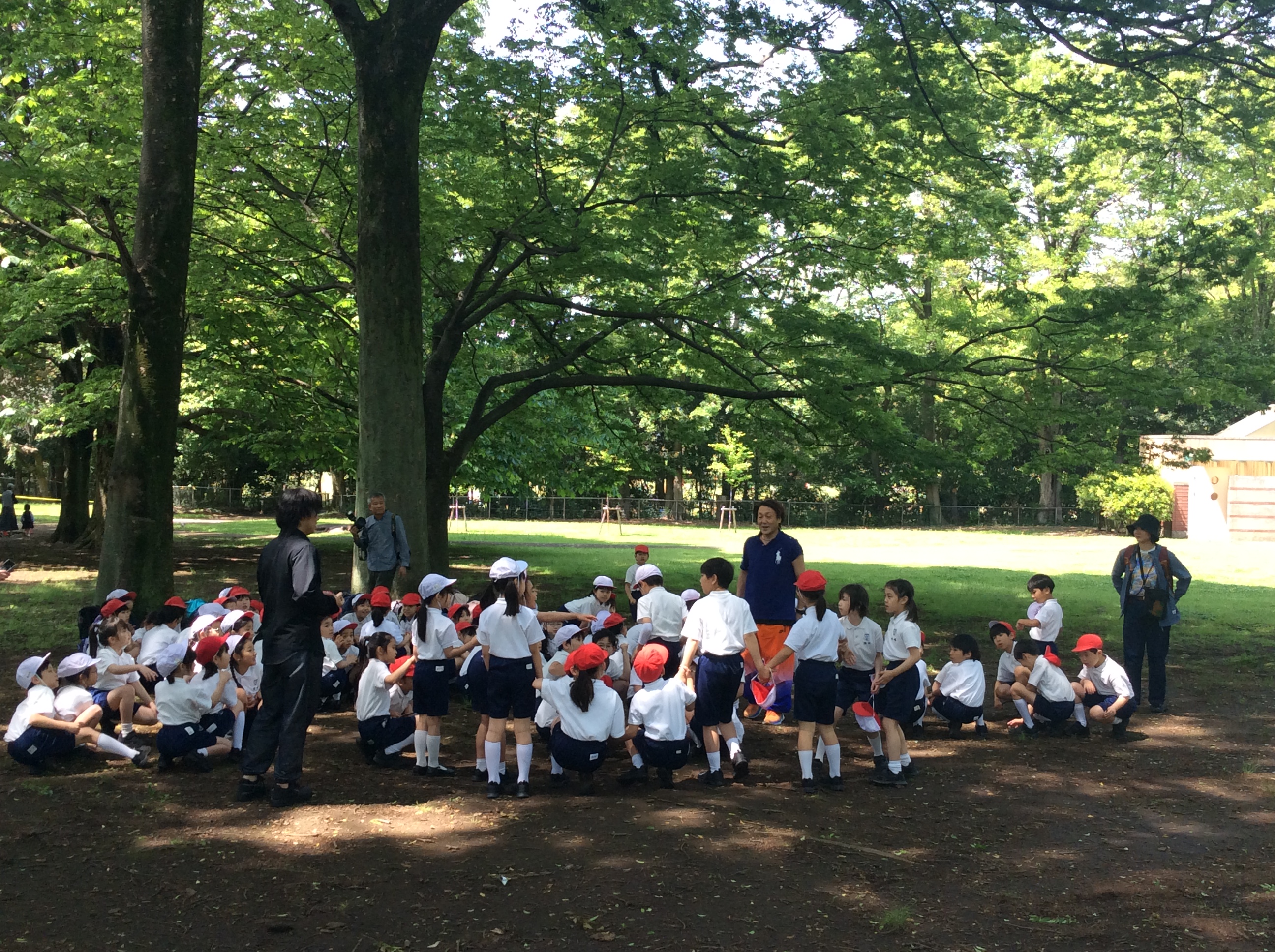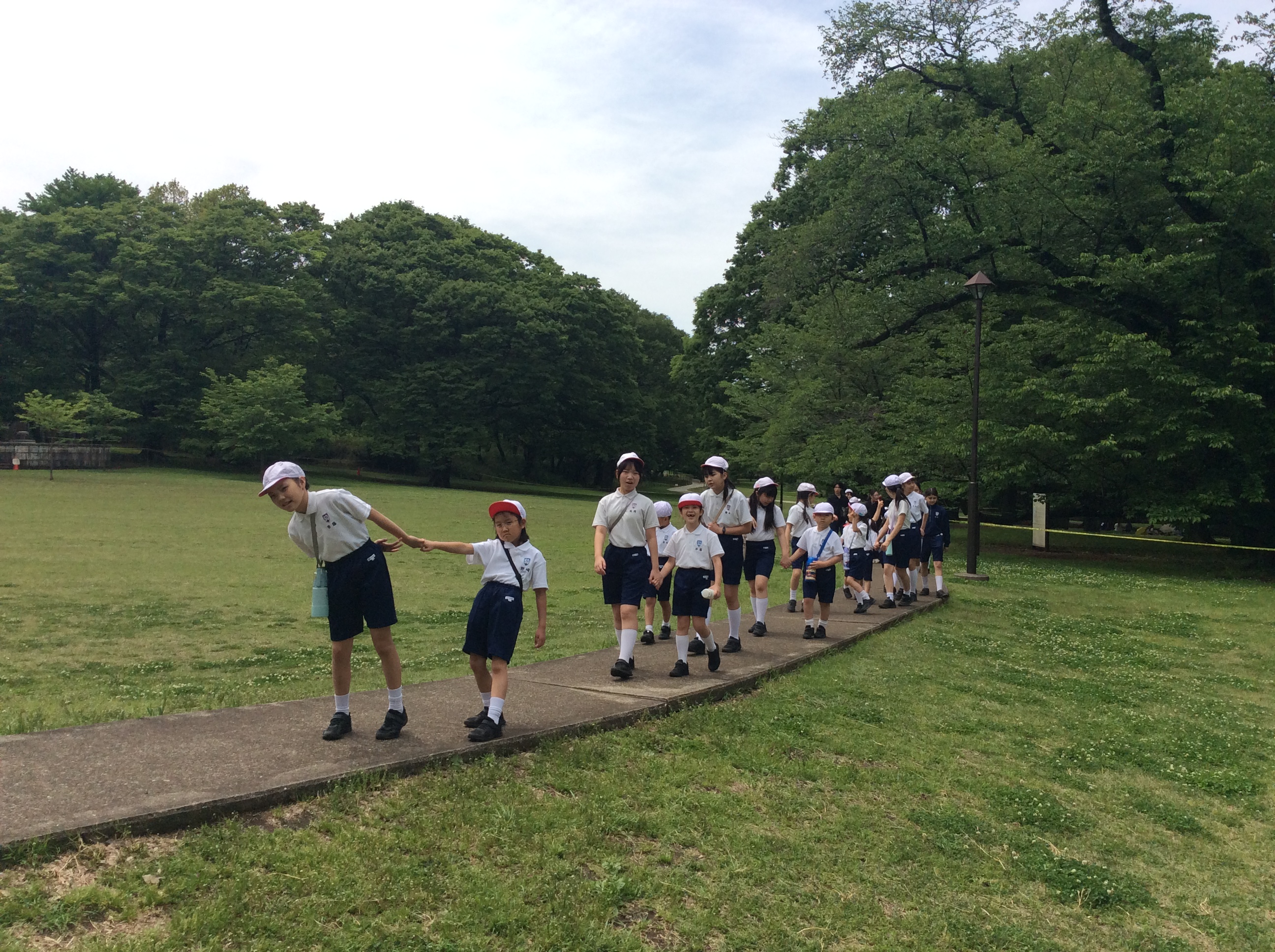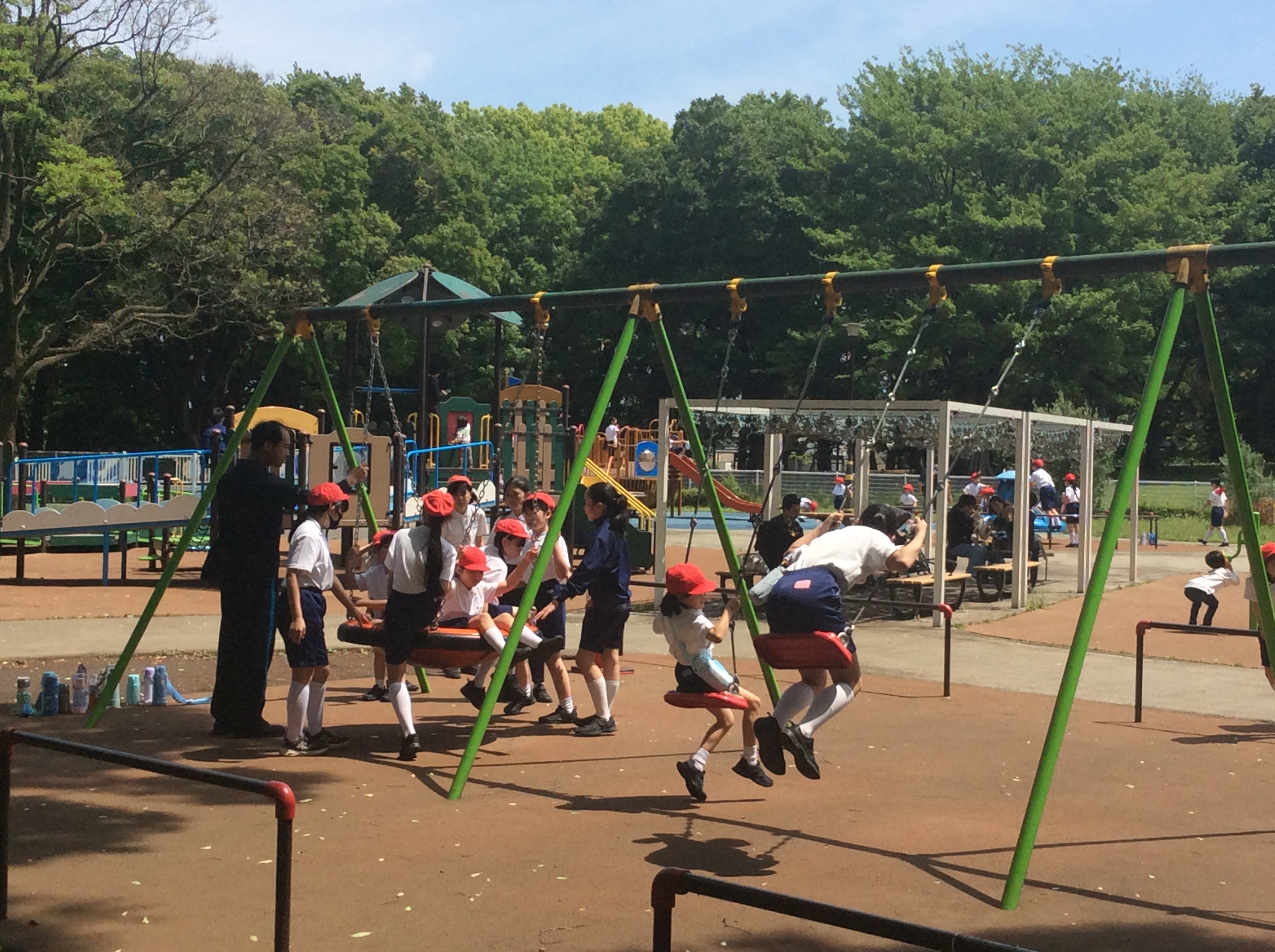 きれいな青空のもと、全校児童が砧公園へ繰り出しました。広いフィールドでおもいっきり遊ぶぞ!!