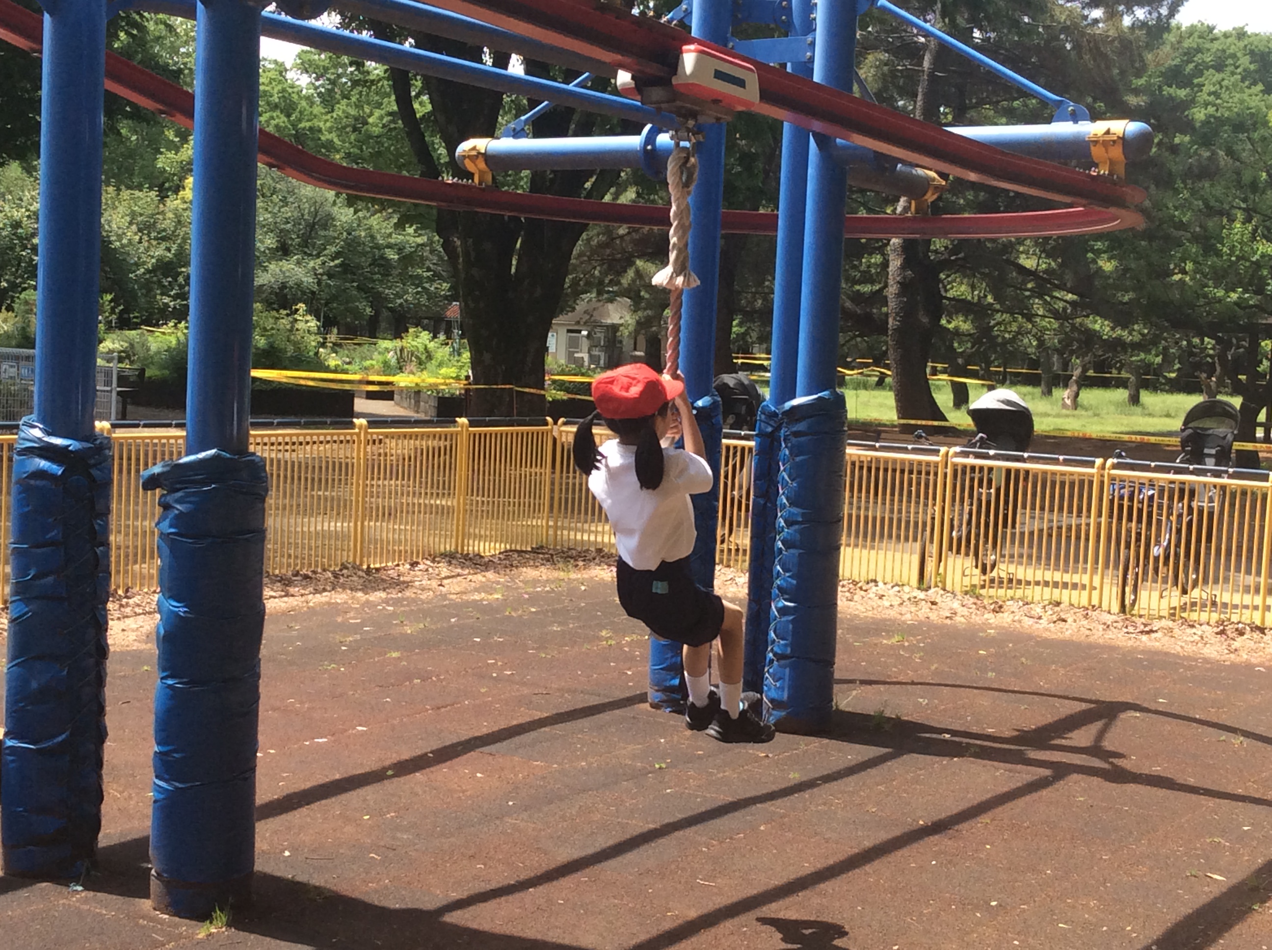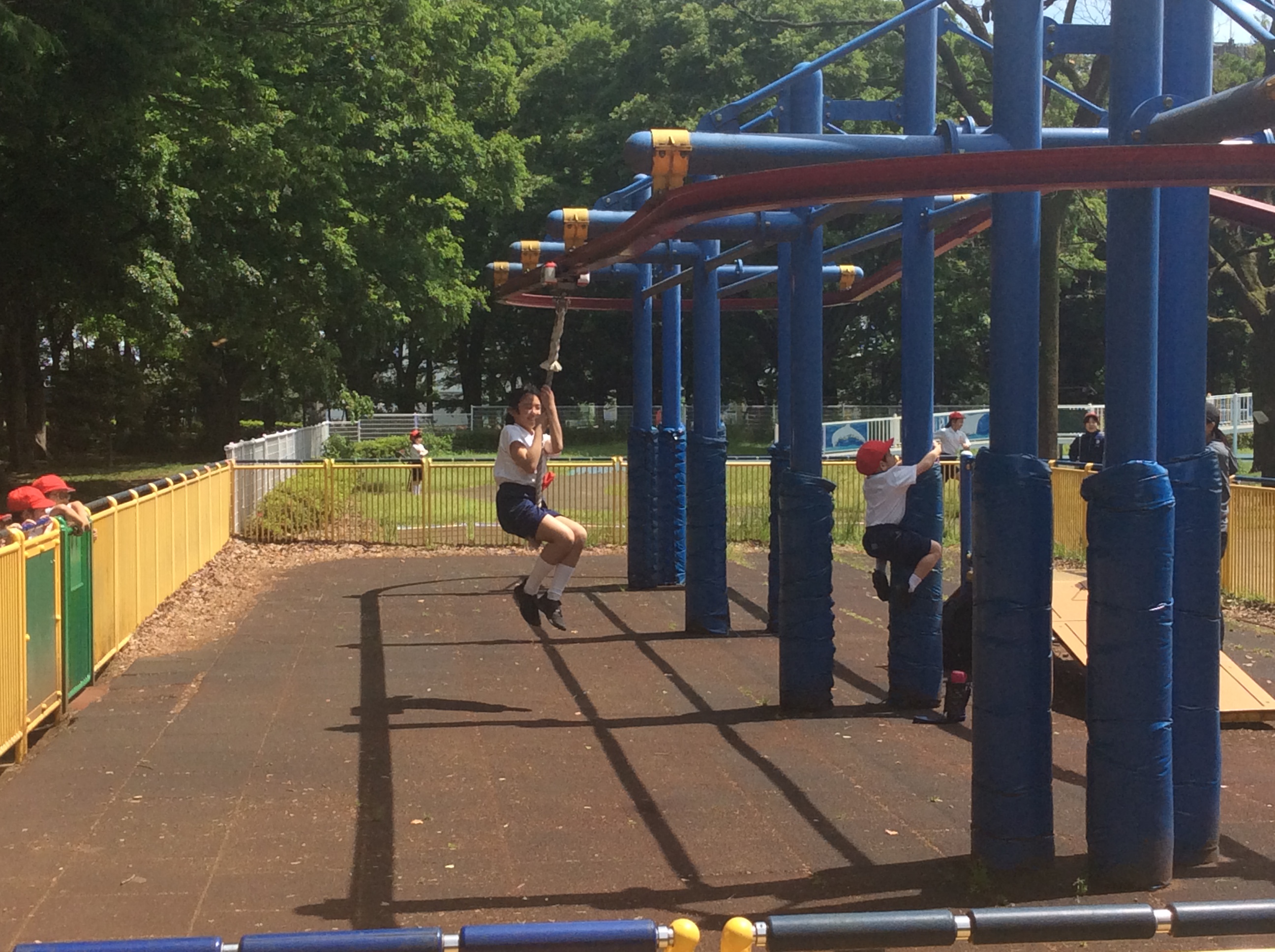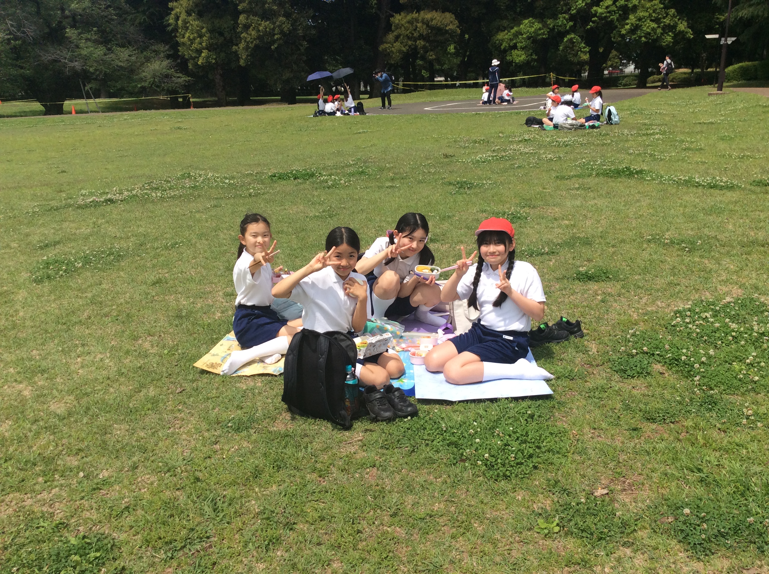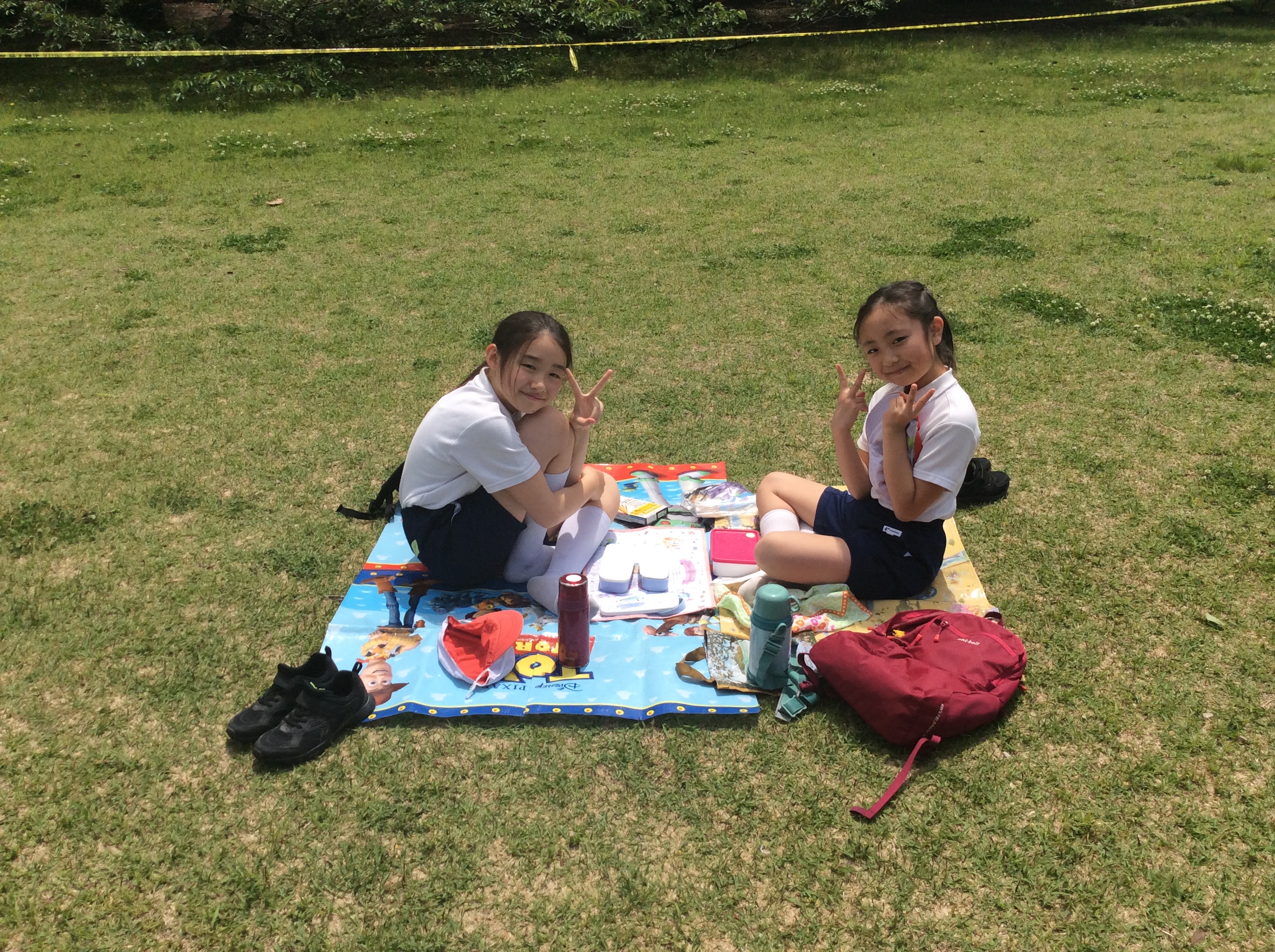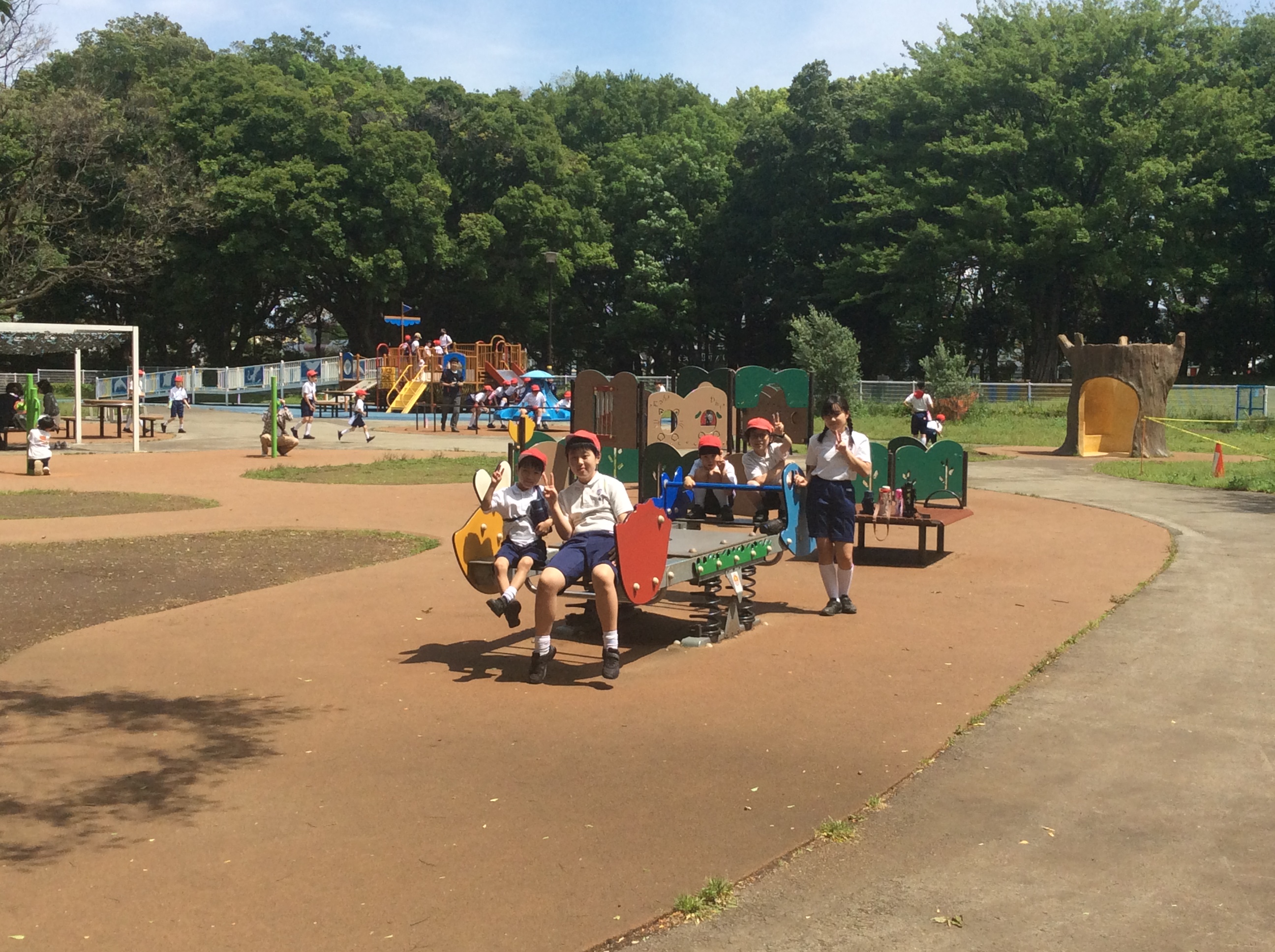 6年生は1年生と一緒に過ごし、公園内の探検にも出かけました。他の学年は大勢でゲームをしたり、ミニ運動会をしたり、元気に走り回って・・・