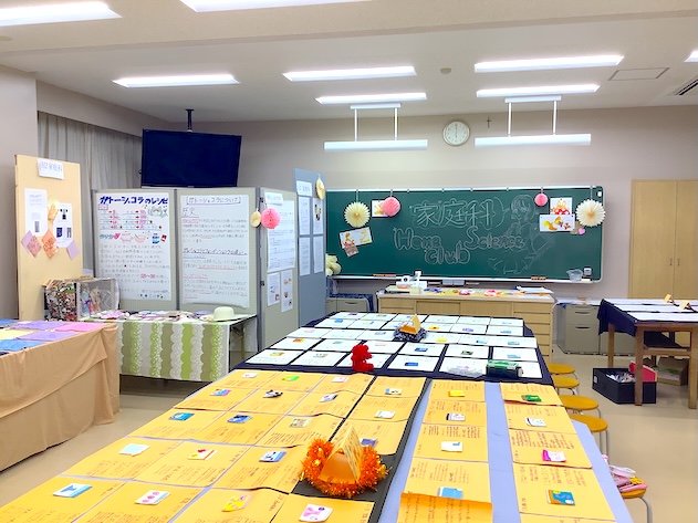 学年企画とともにおすすめしたいのが、教科展示です。国語科(書写を含む)、社会科、英語科・フランス語科、美術科、家庭科、総合的な探究の時間(ドミニコ学)などの展示があります。生徒の皆さんが授業で取り組んだり、夏季の課題として取り組んだ作品などが展示されています。文化の祭典と呼ぶに相応しい、味のある作品をぜひご覧ください。