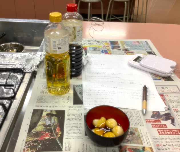 今週の中学2年生の授業で作る「白玉のみたらし」を試作していました。