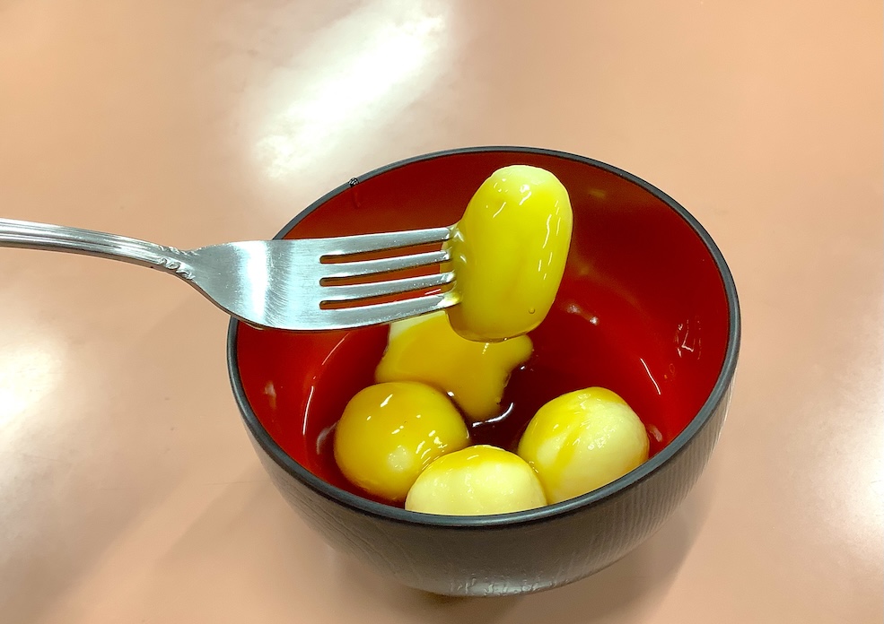 白玉自体も、型崩れしないように工夫されているとのことでした。実際に手を動かしながら、その振り返りを通じて生徒も教員も学びを得られるというのが、実技教科の醍醐味といえるでしょう。