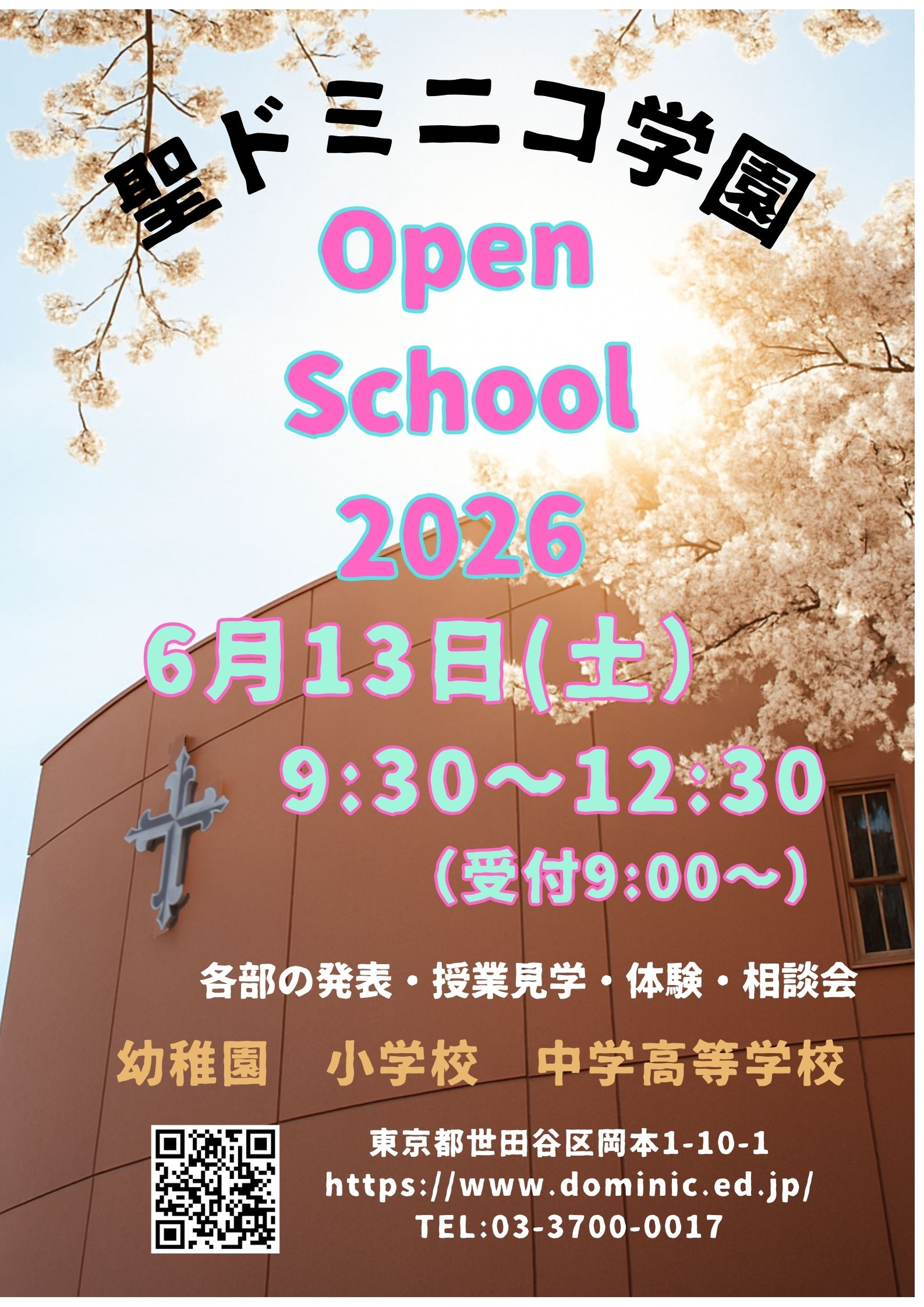 6月13日(土)9時30分より、本校にて「聖ドミニコ学園Open School 2026」を開催いたします。