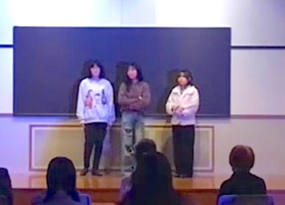 現在、演劇部は中学生部員のみ在籍しており、今回は主演を中学1年生、脚本を中学3年生が担当しました。脚本担当の部員は演者としても出演したほか、劇中歌の作詞・作曲も手がけました。