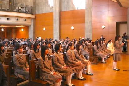 中学校から本学園に入学された方々にとっては初めての聖歌や共同祈願となりましたが、学校生活を送る中でしだいに慣れていくことと思います。