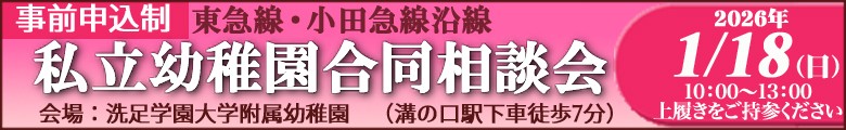 2026年1月18日(日)、洗足学園大学附属幼稚園で行われる東急線・小田急線沿線私立幼稚園合同相談会に参加いたします。本園もブースを設けて、様々な質問にお答えする機会となっております。是非お気軽にご来場ください。お待ちしております。