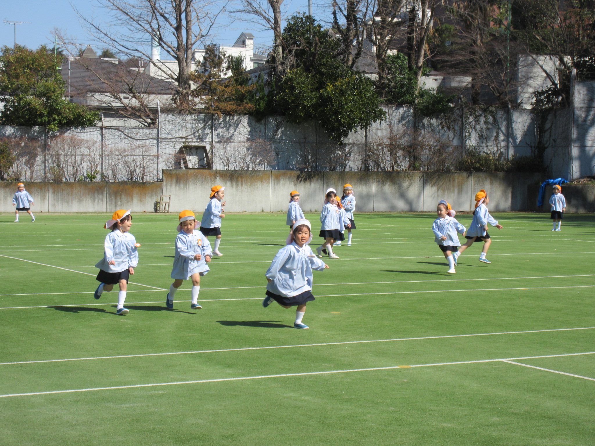 秋に運動会をした広いグラウンドは、この日は他学部の使用も無く、ひまわり組が独り占め!思いきり走り回って遊ぶことができました。