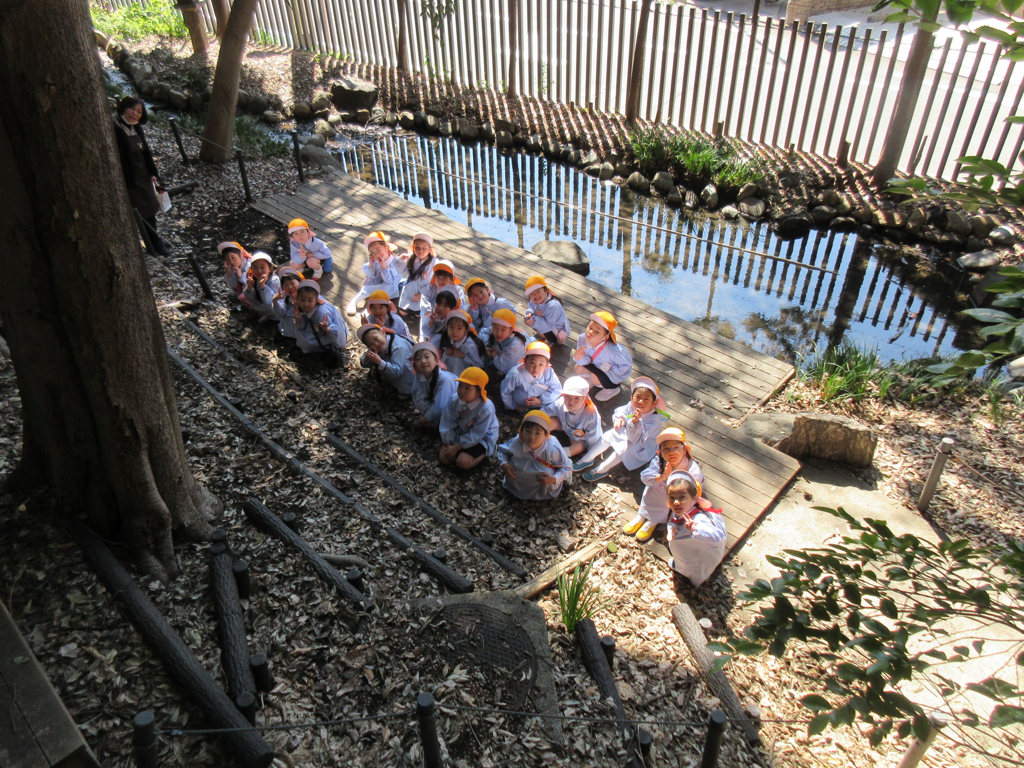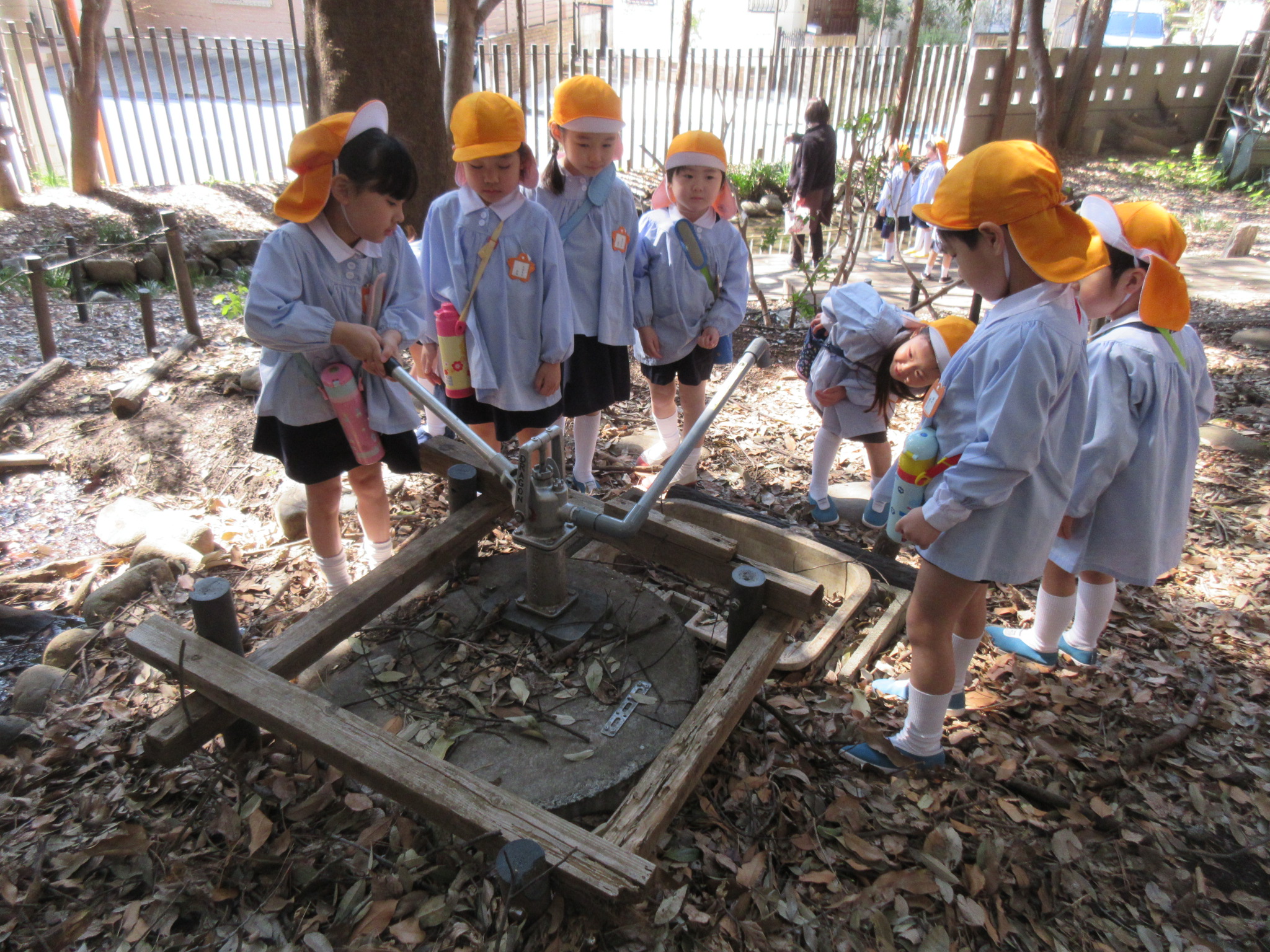 その後、すだれ沼にも足を延ばしました。沢山落ちているどんぐりを拾ったり、目を凝らして水の中を見てみたり、水が出ないかと井戸を漕いでみたり、園庭ではできない遊びも楽しむことができました。クラス全員の仲が一段と深まり、ひまわり組で過ごすことの喜びを改めて感じていた年度末に、また1つステキな思い出ができましたね!